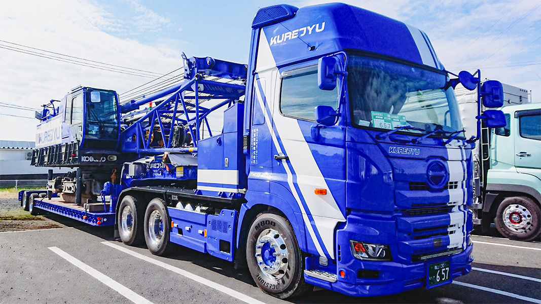 呉重⾞輌株式会社は、移動式クレーンリース、貨物運送事業への進出と業務を拡張し、⻑年にわたり皆様にご愛顧いただいております。